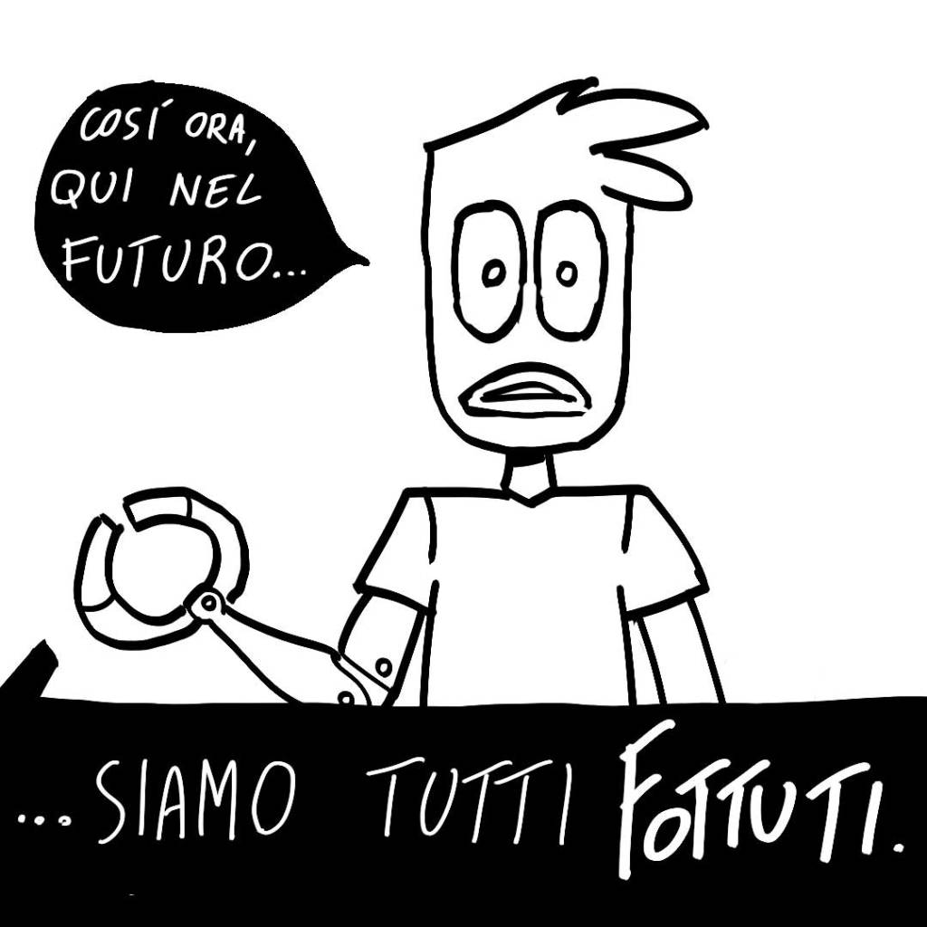 Ma non è forse la tecnologia a immaginarsi attraverso di noi? Potremmo interpretare questa mia frase in senso mistico-evolutivo-cosmico-ermetico-supercazzoloso: cioè, pensare come Tipler che si vada verso un Punto Omega tecno-scientifico in cui tutta la realtà è simulata da un’IA (idea che Dick avrebbe adorato per poi cagarsi addosso) e pensare come i filosofi ermetici che “dio” si crei rispecchiandosi in noi. Dunque, appunto, (d)IO diventa (d)IA.